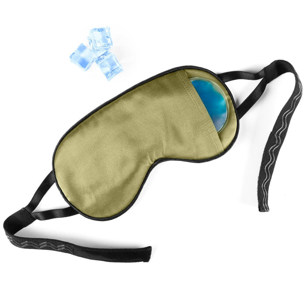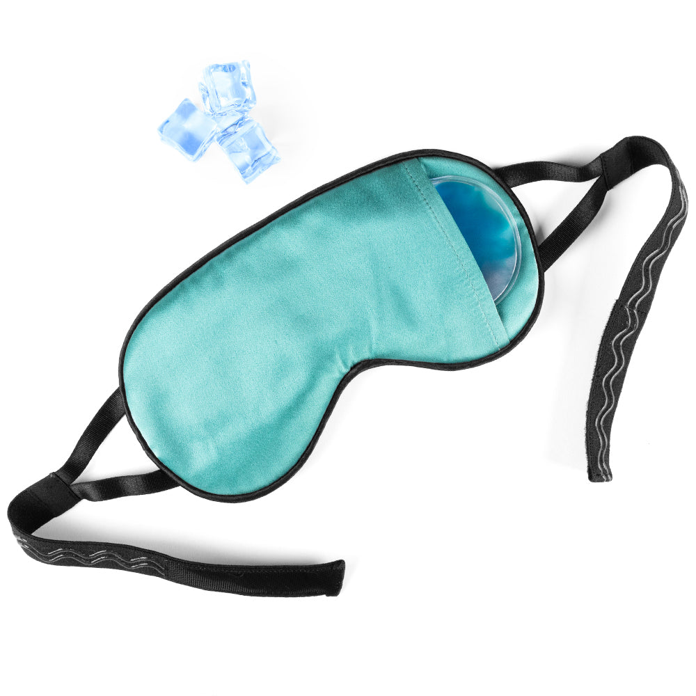 The sleep mask features a dedicated pocket for the gel insert, which can be used for cooling or warming therapy:
